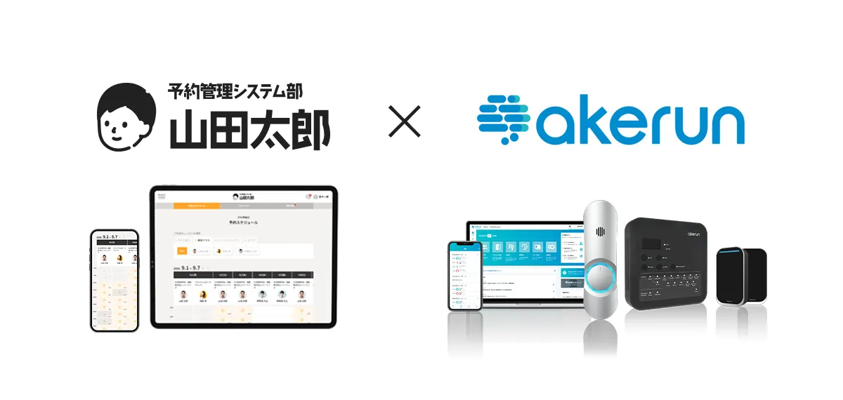 既にAkerunを設置されている施設・事業者様につきましては、予約管理システム部 山田太郎をご利用いただくことで、Akerunとの連携が可能となります。 システム移行に伴うセットアップ作業を弊社にて対応するプランをご用意しておりますのでお気軽にお問い合わせください。